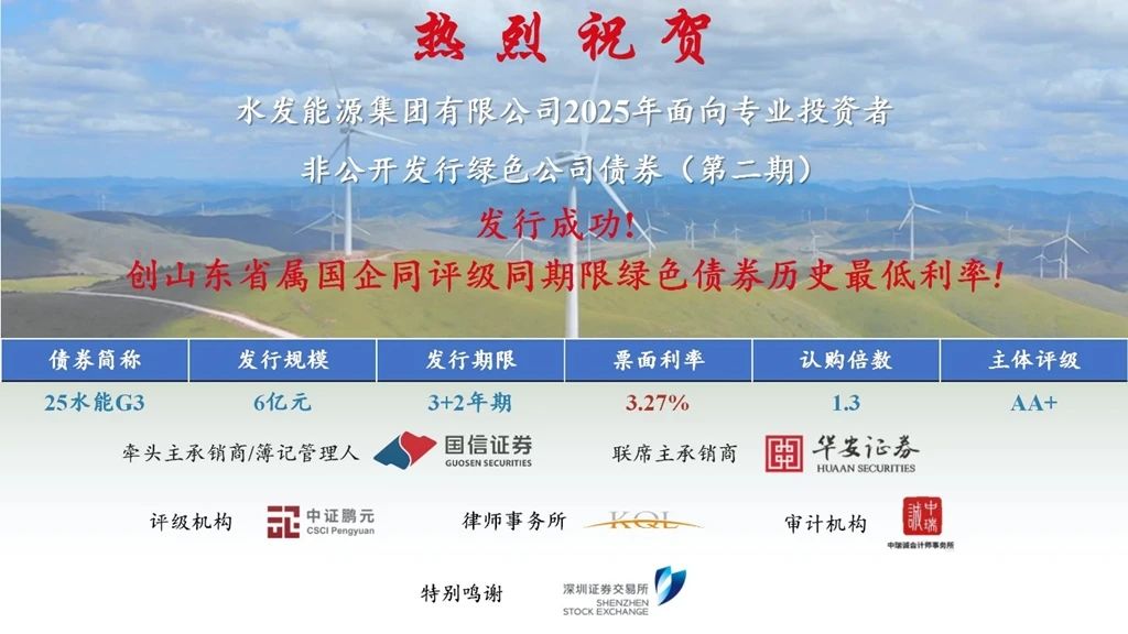 捷報!水發(fā)能源集團成功發(fā)行六億綠色公司債券 創(chuàng)山東省屬國企同評級同期限綠色債券歷史最低利率